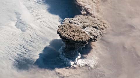 เมฆรูปเห็ดที่เกิดจากการระเบิดของภูเขาไฟ Raikoke ประเทศรัสเซีย