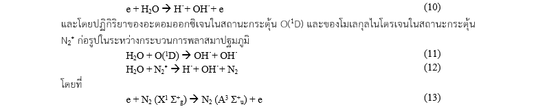 2 มาก ดังนั้นอนุมูลขั้นกลางที่สำคัญคืออะตอมออกซิเจน O• (สมการที่ 2-3) จะร่วมกับการชนของอิเล็กตรอนกับ N