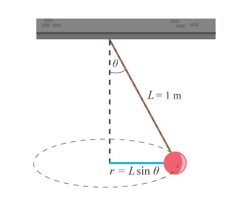 | 13. | ผูกวัตถุที่ปลายล่างของเชือกเส้นหนึ่งยาว 1 เมตร ตรึงปลายบนไว้แล้วแกว่งวัตถุให้เป็นวงกลมในระนาบระดับ ถ้าเชือกทำมุม θ กับแนวดิ่งวัตถุจะแกว่งครบรอบในเวลา T วินาที ความเร่งสู่ศูนย์กลางของวัตถุมีค่า |